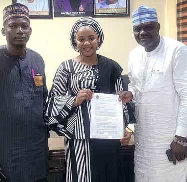Our team, led by the Local Engagement Officer, Mallam Abdullahi Abubakar and supported by the highly respected leader and scholar, Dr Ndanusa Manzuma (Gorozo yan Lafiagi), met the Honourable Commissioner of Environment, Nafisat Buge, in her office to deliver a collaborative letter requesting support on how to revive the Effon Forest Reserve to achieve its ecological objectives. The objectives include raising awareness of forest conservation by educating local communities and stakeholders on forest environmental and economic benefits and the reversal of land degradation and deforestation through restoring degraded lands and mitigating the impact of deforestation in line with the ministry's regreening goals. The team met the Honourable Commissioner last Friday (10/1/25) to discuss their request and how the ministry can support local community organisations through the ongoing ACRESAL projects, which support northern states in reverse certification and land degradation to improve livelihoods in rural communities. The Commissioner was delighted to receive the team and directed them to the Director in charge of the ACRESAL project for further deliberations. Part of the request put forward by our organisation is the supply of 10,000 planting materials to restore about 20 hectares of degraded forests in the Effon Forest Reserve in a community-led forest management scheme. The Emir of Lafiagi, HRH Estu Baba Kudu, asked Dr Ibrahim Ndaginna Abdullahi to lead the reforestation project at the community level. The Lafiagi Scholars' Forum and the members of the committee on the restoration of cattle routes and farmer-herder conflict strongly support this project. The former Kwara State Commissioner for Environment and now Commissioner for Youths, Honourable Ndanusa, also provided helpful advice for the commencement of this project. We have since started by clearing the forest patch to establish a local tree nursery. To reforest our community-owned forest reserve, we need the support of every stakeholder in our community and beyond.
